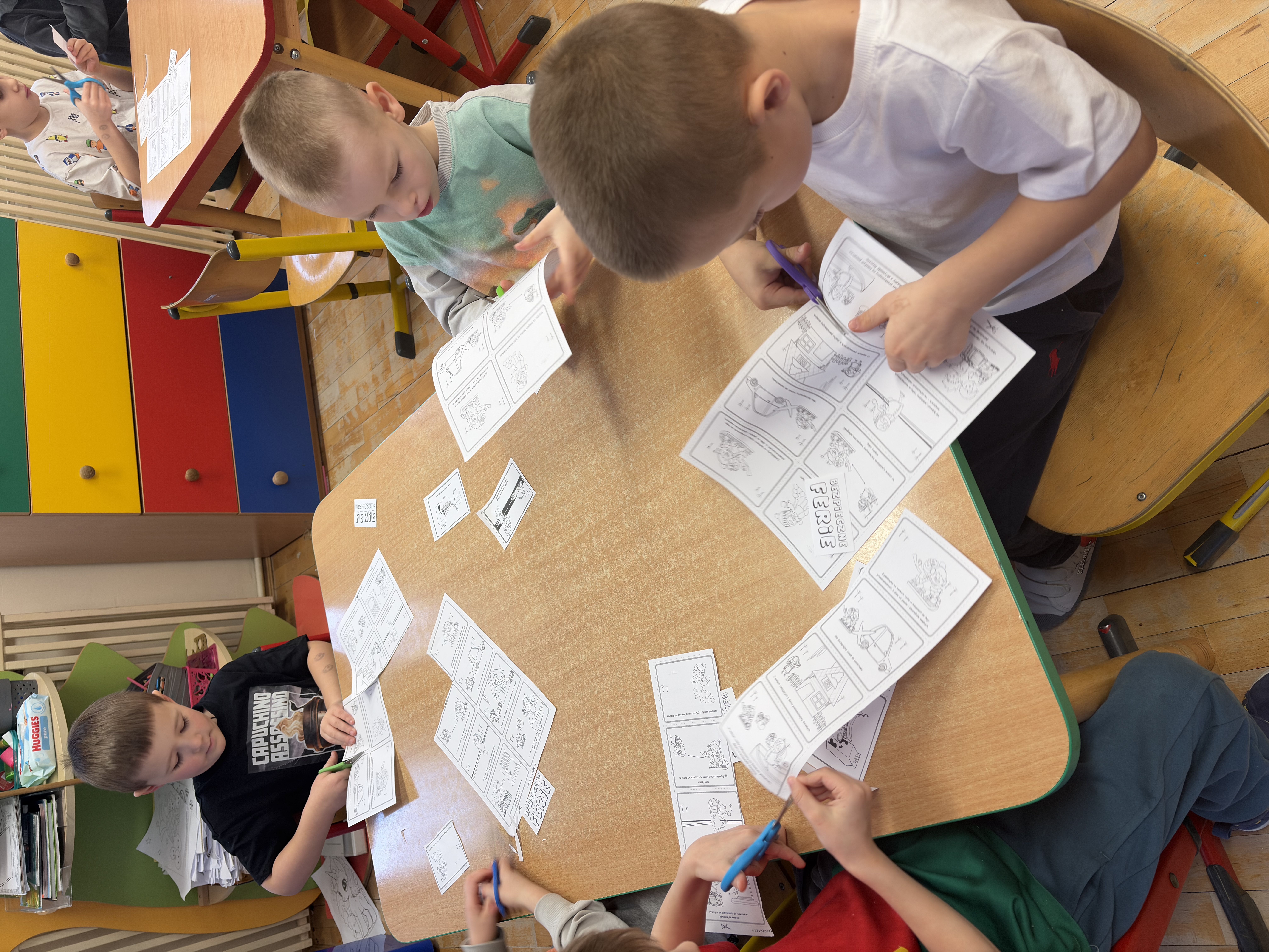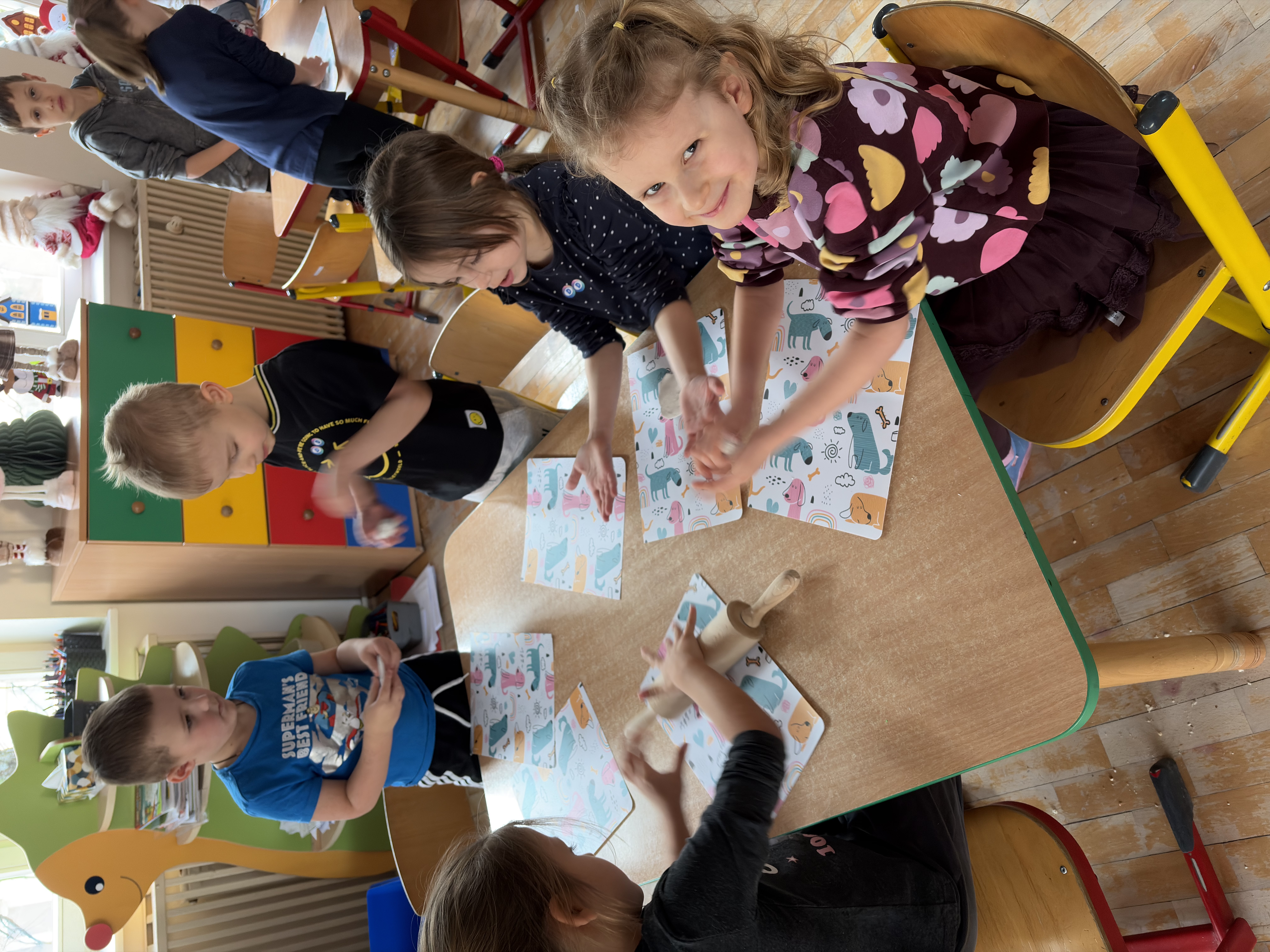 W piątek dzieci uczestniczyły w zajęciach z pedagogiem specjalnym opartych na książce „Co robi Frania? – Współpraca”. Podczas spotkania rozmawiały o tym, jak ważne jest wspólne działanie, pomaganie sobie nawzajem i osiąganie celu razem.
